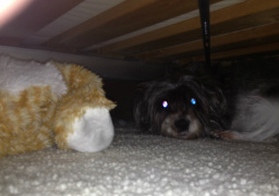 My people took me on a little trip this week. We stayed in a new place with a new bed and everything! I sniffed that place out to make sure that nothing was amiss. Then I stamped my "seal of approval" on it. My people said something about me "marking my territory." I don't know what that means.